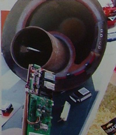 It’s an awesome roar when eight grams of black powder is set off at ground level, and in fairly close proximity. It was more than adequate for the first test. In fact, it was perhaps a little too energetic. We decided another test was in order, this time using “only” six grams. It worked just fine—though the nose cone and the arming switches did sustain some minor damage that has since been repaired.